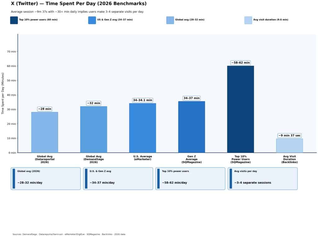 Daily time spent on X sits in the mid-tier among major social platforms: